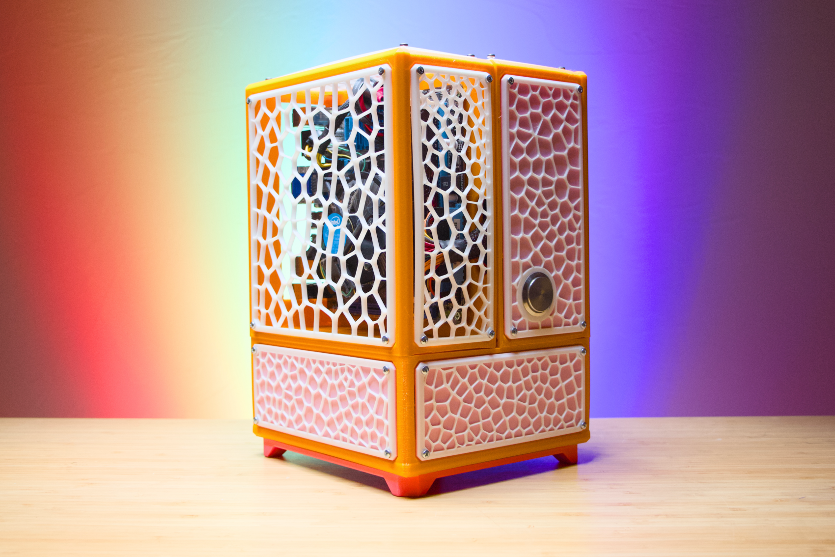 A fully 3d printed, modular computer case optimized to be a NAS chassis. Accommodates a fully passively cooled ITX board, eight 2.5 in drives, and a full ATX sized PSU.